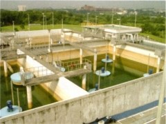 污水處理流程 :進流抽水站、前處理 (粗篩、細篩、渦流沉砂 )、初沉池、活性污泥法、終沉池、消毒、放流